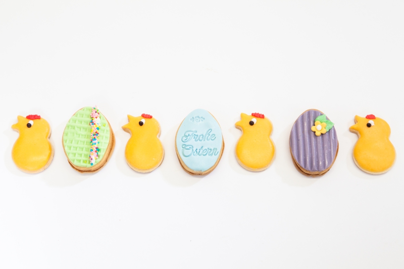 Unsere Oster-Teegebäckmischung besteht aus 4 Küken, 4 Hasen und 3 mit Nougat gefüllten Ei-Mürbeteigkeksen. Nicht nur ein Genuss für den Gaumen, auch eine Augenweide.